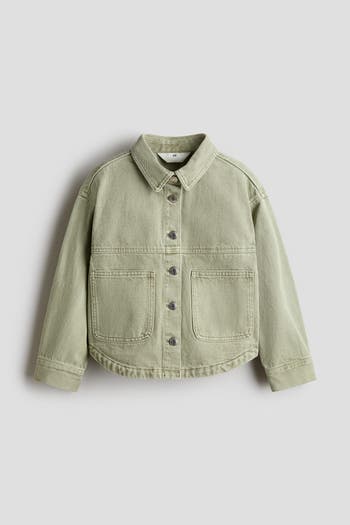 Overshirt in soft cotton twill with a collar, buttons down the front and a yoke at the front and back. Buttoned cuffs, patch front pockets and a rounded hem. Unlined.