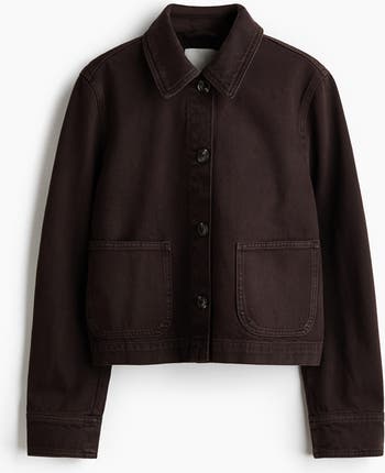 Short shacket in cotton twill featuring a collar and buttons down the front. Yoke with an inverted box pleat at the back, patch front pockets and cuffed sleeves.
