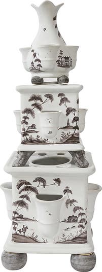 Layers of the brand's artisanal glazes create the pattern of this intriguing tulip vase that brings an idylic scene of flora and fauna from a country estate into your cozy space. Each section is a separate piece that can be stacked as one unit or displayed on their own.