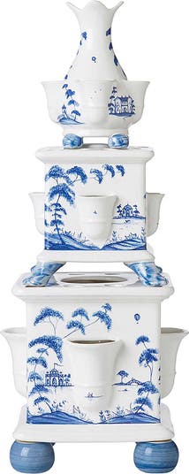 Layers of the brand's artisanal glazes create the pattern of this intriguing tulip vase that brings an idylic scene of flora and fauna from a country estate into your cozy space. Each section is a separate piece that can be stacked as one unit or displayed on their own.