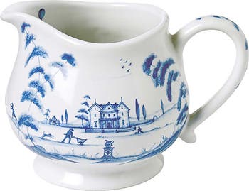 Layers of the brand's artisanal glazes create the pattern of this ceramic creamer that brings a whimsical scene of a country estate to your tablescape.