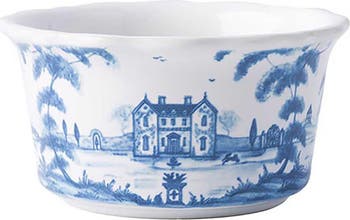 Layers of the brand's artisanal glazes create the pattern of this ceramic ramekin that brings a whimsical scene of a country estate to your tablescape.