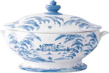 Layers of the brand's artisanal glazes create the pattern of this statement-making tureen that brings an idyllic scene of flora and fauna from a country estate to your tablescape.