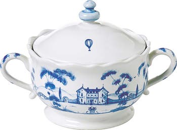 Layers of the brand's artisanal glazes create the pattern of this sugar bowl that brings an idyllic scene of flora and fauna from a country estate to your tablescape.