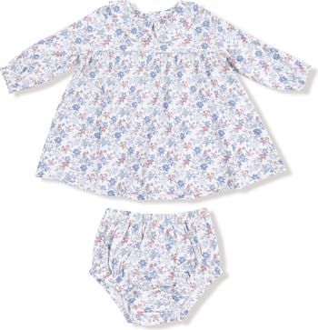 A field of country wildflowers blossoms throughout this Peter Pan-collared dress cut from soft and breathable jersey and paired with matching bloomers.