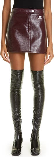 An embroidered logo winks at the waist of this vinyl miniskirt signaling Nicolas Di Felice's sultry revival of this cult ‘60s label.