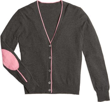 Contrast tipping leads to ovals on the elbows that look like vintage sportswear patches on this fine-gauge cardigan upgraded with a kiss of wool.
