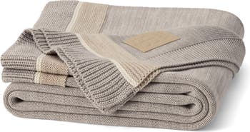 A striped border offers a crisp counterpoint to the exceptionally soft organic cotton of this knit throw blanket that wraps you in its warm embrace whether you're curled up on the sofa or lounging in bed.