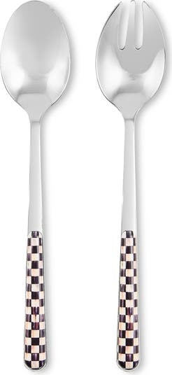 Dish up your daily greens with this elegant serving set made with durable stainless steel and decorated with signature checks on the handles.