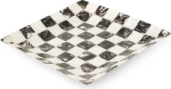 The brand's signature color-dragged checks take on the luminous glow of capiz shells in this decorative tray that's a perfect resting spot for keys, trinkets or vanity essentials.