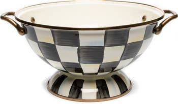 Hand-painted color-dragged checks are anything but basic on this enameled-steel bowl that highlights everything you serve in it.