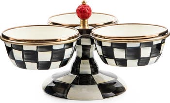Courtly Check Enameled Steel Triplicity Bowls & Stand Set