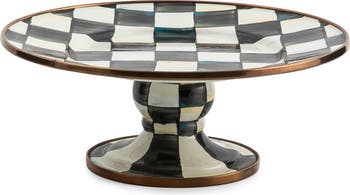 Hand-painted checks are anything but basic on this stainless-steel pedestal platter that adds a dose of panache and personality to your warm, welcoming table.