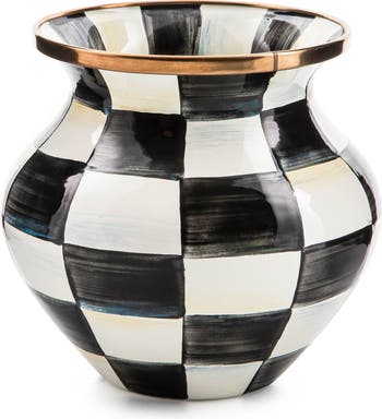 Bold and curvaceous, this petite vase that's hand-painted with color-dragged checks is the perfect spot for showcasing a fresh bouquet.