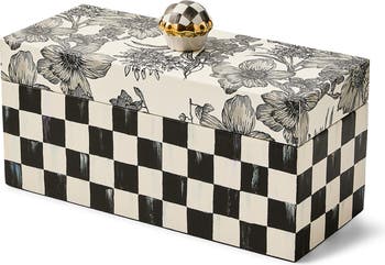 You'll find stylish storage in this faux-leather box featuring a floral lid and signature hand-painted checks.