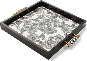 MACKENZIE CHILDS Courtly English Garden Serving Tray, Main, color, Black