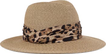 A folded band puts a playful spin on a vacay-ready fedora woven from breezy straw in a packable design.