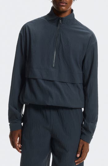 A lightweight, crinkled fabric that breathes keeps you comfortable on the way to or from the courts in this pullover that you'll reach for even when you don't have a match scheduled for the day.