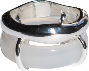 It’s giving sculptural elegance. With a chunky curve of white chalcedony hugged by silver-plated brass, this ring feels like wearable architecture. Fluid, bold, and artful. Made by handwork of carving and polishing. Because of the gemstone’s natural characteristics, each piece may vary slightly in colors and textures.