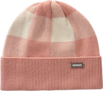 A jacquard of buffalo checks defines a two-tone beanie knit from a warming recycled-wool blend.