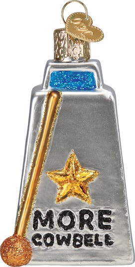 Made from fine blown glass with a dusting of glitter, this ornament is just the thing if your holiday decorations need more cowbell.