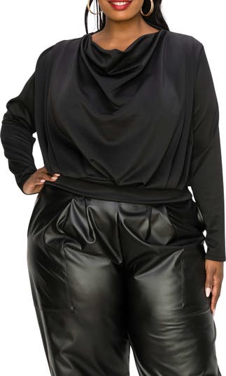 A drapey cowl neckline adds to the elegance of this versatile long-sleeve top made from a stretch-kissed scuba fabric.