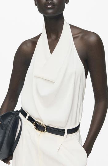 A drapey cowl neck adds movement and dimension to this smooth satin top that's meant to show off your shoulders and back.