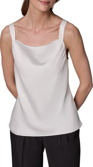 Cut from glossy satin, this sleeveless top features a soft neckline drape for texture and dimension.