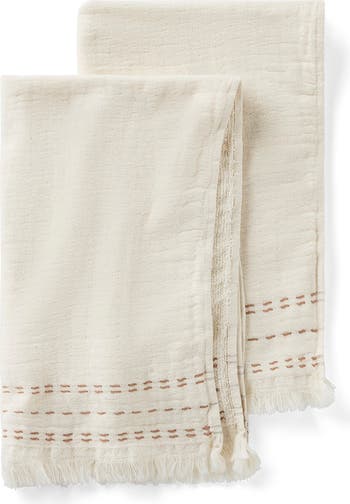 Imbue your living space with an artisanal splash with this duo set of superabsorbent organic-cotton hand towels featuring a gauzy texture and precise topstitching.