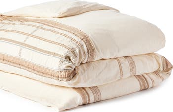 Made from undyed organic cotton, this duvet cover features captivating textures and colors inspired by rustic weavings to create a relaxing mood.