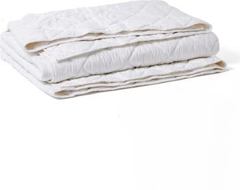Double-needle quilting holds the cotton insulation in place so you always sleep comfortably under this all-season organic-cotton comforter.