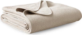 A richly textured honeycomb weave in a substantial, heavy weight gives this organic-cotton throw blanket distinctive appeal.