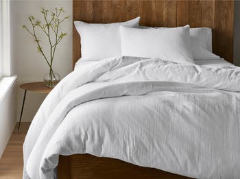 Make your bed utterly relaxing with this crisp sheet set woven from fine organic cotton for natural breathable comfort and softness. The fabric is soft yet durable, meant to get more and more supple with every wash.