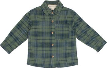 This classic boys' top features a rich plaid fabric in deep forest green and navy blue tones. Designed with long sleeves and a button-front closure, and the chest pocket adds a touch of practicality, while the soft fabric ensures comfort for all-day wear. Perfect for layering or wearing on its own, this top is ideal for both casual outings and more formal occasions. Fabric Care 80% POLYESTER 22% VISCOSE Machine Wash Cold | Line Dry | Do Not Bleach