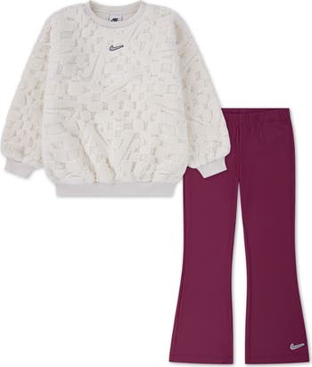 Baby will ace their sporty look while staying cozy in this fluffy fleece sweatshirt and flare leggings set.