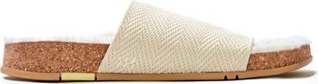 Our iconic Shaw slide embodies cozy chic with its chevron stretch knit and lightweight, seasonless eco-shearling™ that delivers full comfort. Made from a recycled cotton blend, the eco-shearling offers the extra coziness you want in a year-round slide. The open-toe design lets your feet snuggle when you want and breathe when you need, to extend that summer freedom feeling into fall and winter months.
