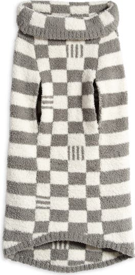 Keep your fur baby extracozy with a snuggly sweater covered in checks and stripes.