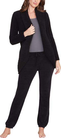 A signature-soft and fuzzy knit amps up the comfort of a long lounge cardi that keeps you cozy around the house or out on errands.
