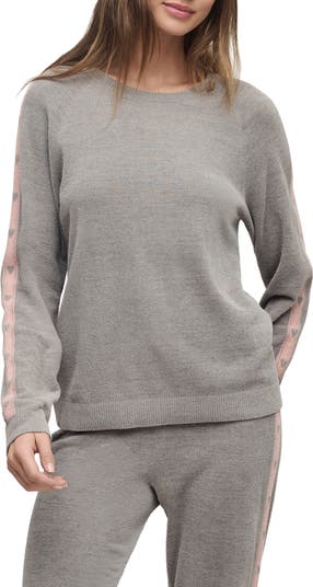 Pastel-pink racing stripes are punctuated with hearts to frame a crewneck made from the brand's sumptuously soft CozyChic fabric.