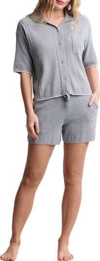 Slumber or simply lounge in the unparalleled softness of the brand's signature CozyChic Ultra Lite fabric with these ribbed pajamas complete with a scalloped button-up and coordinating drawstring shorts.