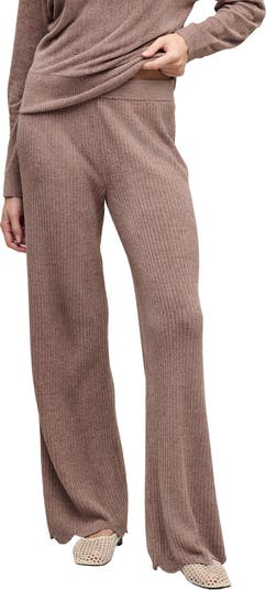 Designed to sit low, these lounge pants offer a versatile silhouette while the ribbed finish and scalloped hems enhance the soft texture.