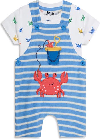 Crabby has never been so cute in this cotton T-shirt and appliquéd overalls set that will have baby beach-day ready.