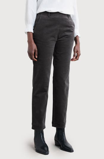 Sailor-inspired buttons spotlight the hip of stretchy, organic-cotton pants featuring an easy pull-on design that provides all-day comfort.