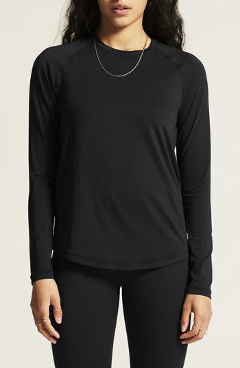 Keep comfortable during workouts in this moisture-wicking top made from recycled fibers and styled with plenty of stretch and raglan sleeves for ease of motion.