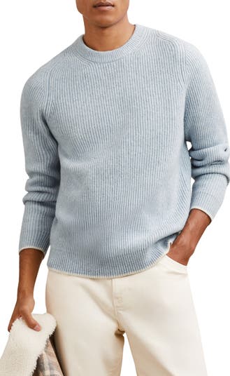 Soft ribbing enhances the texture of this woolly sweater knit with a classic crewneck and subtle contrasting trim.