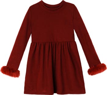 Wrap her in cozy elegance with this festive burgundy dress designed to make every seasonal moment feel extra special.