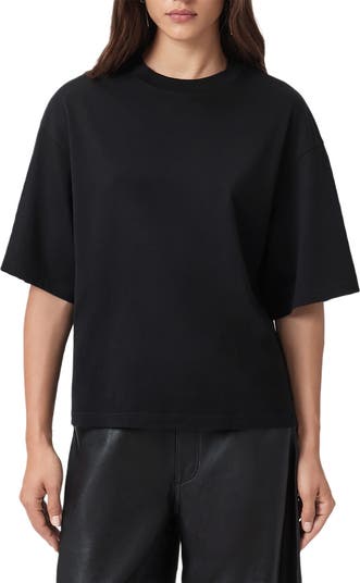Lacy cutouts on the back add a touch of unexpected sophistication to this relaxed crewneck T-shirt.