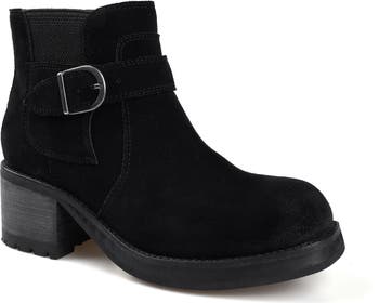Keep your around-town style suave and modern with this suede Chelsea boot embellished with a buckle strap.