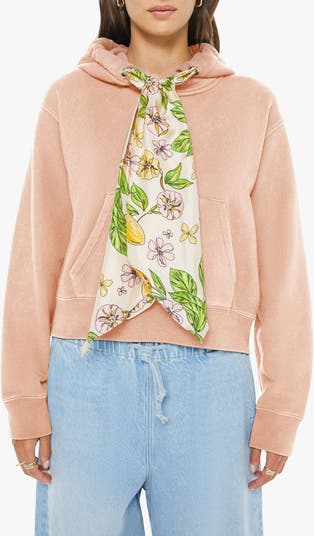 Printed scarf ties add charm and texture to this weekend-perfect hoodie made from soft cotton.