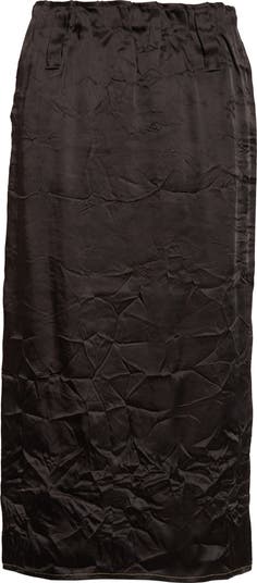 The sister-led Turkish label turns a perennial fashion faux pas into au courant style with this crinkled satin pencil skirt whose peekaboo slip is made for showing.